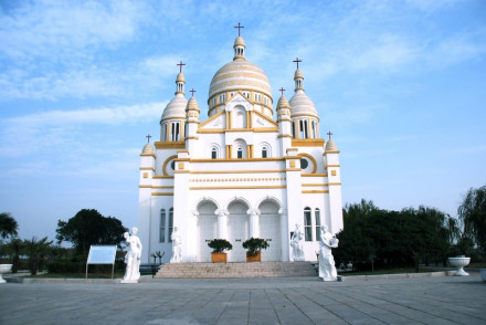 巴黎圣心教堂是典型的折衷主義風(fēng)格的建筑,建于1875年,1877年竣工。在19世紀中葉至20世紀初,折衷主義建筑是歐美一些國家流行的一種建筑風(fēng)格,19世紀中期以法國最為典型。這座建筑的穹頂和厚實的墻身呈現(xiàn)了拜占庭建筑的風(fēng)格,又兼取了羅曼建筑的表現(xiàn)手法。八里河的這座圣心教堂是由阜陽建筑設(shè)計院依據(jù)圖片,按比例建造的。