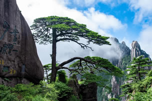 黃山原名“黟山”,因峰巖青黑,遙望蒼黛而名。后因傳說(shuō)軒轅黃帝曾在此煉丹,故改名為“黃山”。黃山代表景觀有“五絕三瀑”,五絕:奇松、怪石、云海、溫泉、冬雪;三瀑:人字瀑、百丈泉、九龍瀑。黃山迎客松是安徽人民熱情友好的象征,承載著擁抱世界的東方禮儀文化。