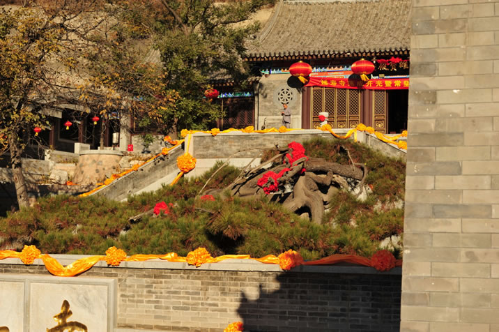 延壽寺 延壽寺,位于昌平區(qū)延壽鎮(zhèn)黑山寨村北兩公里,為三進(jìn)院落寺院,正門(mén)為三開(kāi)間的寺院大門(mén),莊重恢宏進(jìn)入寺院大門(mén),抬眼上望,一座漢白玉筑成的巨大“佛”字迎著朝陽(yáng),矗立在山崗上,在天空映襯下,顯得分外耀眼奪目。菩薩殿是延壽寺的第二重殿,面闊3間,進(jìn)深3間,殿內(nèi)供奉著漢白玉雕刻的釋迦牟尼像和碧玉觀音菩薩像。碧玉觀音菩薩像高1.2米,國(guó)內(nèi)少有,價(jià)值連城。大雄寶殿是延壽寺第三重殿,也是寺內(nèi)的主體建筑,殿內(nèi)供奉三尊佛,被稱(chēng)作三世佛,使延壽寺成為佛、法、僧三寶俱全的寺院。 |