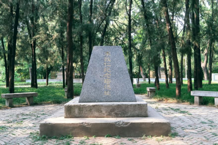 辛亥革命先驅(qū),中國國民黨元老宋教仁在袁世凱的北京政府擔任農(nóng)林部總長期間,曾在農(nóng)林部下屬的農(nóng)事實驗場內(nèi)鬯春堂居住。民國三年(1913年)3月宋教仁獲選國民政府總理,被袁世凱刺殺。此后,在宋教仁住過的鬯春堂北面建立了一座2米高的“宋教仁紀念塔”,塔型采用古希臘方尖碑的形式,環(huán)塔四周種植柏樹百余株。1966年文化大革命爆發(fā),因為宋教仁的身份為國民黨元老,其紀念塔被毀,僅余二層混凝土基座。
