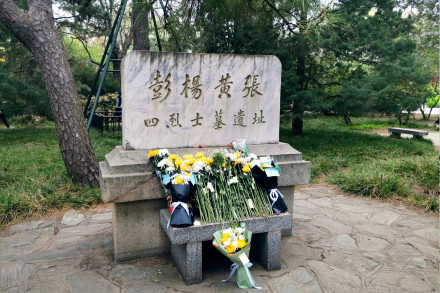 民國二年(1912年)1月16日由革命黨人黃之萌、張先培、錢鐵如、吳若龍、楊禹昌、羅明典、鄭毓秀等18人組成的暗殺團體在北京東華門伺機刺殺袁世凱,制造了東華門事件,當場炸死袁世凱衛(wèi)隊長等10余人。革命黨人黃之萌、張先培、楊禹昌等10人被捕并被殺。民國二年(1912年)2月,南京臨時政府褒揚彭黃張楊四人的革命業(yè)績,追贈彭家珍為大將軍,并為彭家珍、楊禹昌、黃芝萌、張先培等四位烈士在農(nóng)事試驗場營建墓地。整個墓地呈正八角形,距地面約1米,正中立約8米的紀念碑,碑上刻“彭、楊、黃、張四烈士墓”。底座的東南、東北、西南、西北各有七級臺階通向紀念碑。四烈士就安葬于正南、北、東、西四面的石冢下,每座墓前均有碑文,記錄烈士事跡,并有中國國民黨黨徽裝飾。1966年文革爆發(fā),紅衛(wèi)兵砸毀了飾有青天白日標記的四烈士墓,先僅存一塊四烈士墓遺址碑存留。