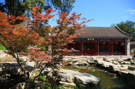 自1989年起,每年都舉辦以觀紅葉為主題的紅葉文化節(jié)。展覽的紅葉主要有五角楓、三角楓、雞爪楓、柿樹等,面積最大的紅葉樹種是黃櫨,有近10萬株。這些紅葉樹種葉子里含有大量的葉綠素、葉黃素、類胡蘿卜、胡蘿卜素、花青素,春夏兩季葉綠素進(jìn)行光合作用,并使葉子呈現(xiàn)綠色;霜秋季節(jié),天氣變冷,晝夜溫差變化增大,葉綠素合成受阻,逐漸破壞消失,而類胡蘿卜、胡蘿卜素、花青素成份增多,使葉子呈現(xiàn)紅黃、橙紅等色彩。