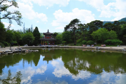 知松園位于南北主要游覽干道西側(cè),占地2公頃,是1987年新辟建的景區(qū)。景區(qū)內(nèi)一、二級古松柏100余株。在景區(qū)之東立寬1.5米,長2.5米,高5.5米巨石一塊,正面書直徑為0.8米的“知松園”三字,石背錄陳毅詩“大雪壓青松,青松挺且直,欲知松高節(jié),待到雪化時(shí)”。知松取意于《論語·子罕》“歲寒然后知松柏之后凋也”。景區(qū)內(nèi)有古松同琉璃塔形成借景,命名為“瓊松塔影”。