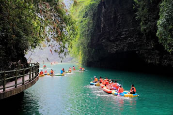 阿依河,位于重慶市彭水縣紹慶街道阿依河社區(qū)6組500號,苗家人把善良、美麗、聰慧的女子稱為“嬌阿依”,阿依河因此得名。阿依河景區(qū)融山、水、林、泉、峽于一體,集雄、奇、險、秀、幽于一身。