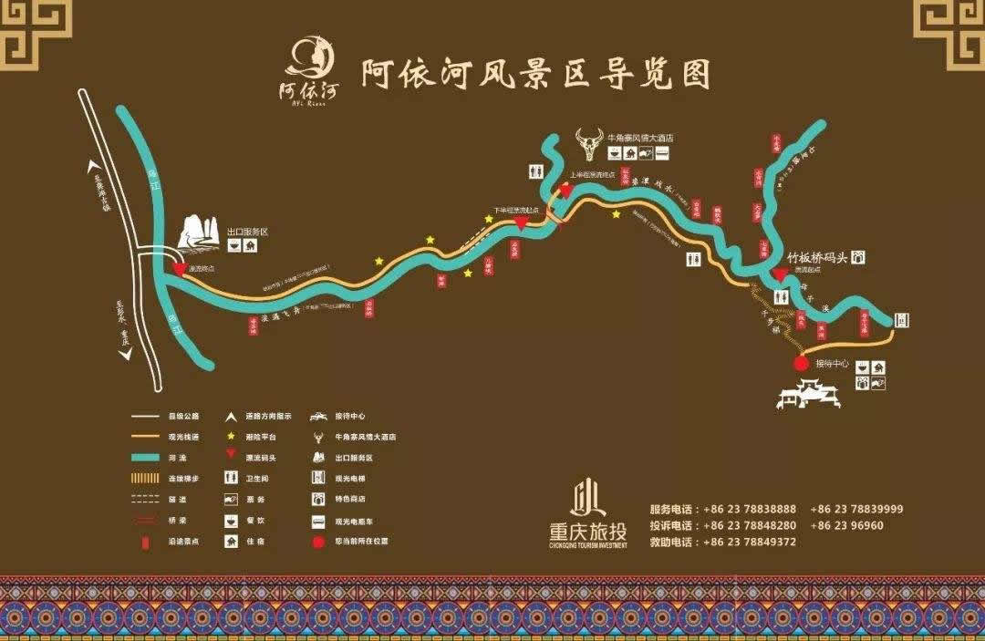 阿依河景區(qū)分為3個觀光游覽區(qū)(峽谷觀光區(qū)、步游觀光區(qū)、竹筏觀光區(qū))、2個休閑度假區(qū)(接待中心民族風(fēng)情休閑度假區(qū)、牛角寨民族風(fēng)情休閑度假區(qū))、2個體驗(yàn)區(qū)(漂流體驗(yàn)區(qū)、戶外體驗(yàn)區(qū))、1個激情漂流區(qū)、1個特色商品服務(wù)區(qū)。對外開放的有8大游覽項(xiàng)目:峽谷聽音、竹筏放歌、碧潭戲水、浪遏飛舟、情定苗寨、青龍?zhí)焯、青龍洞和青龍谷等?/p>