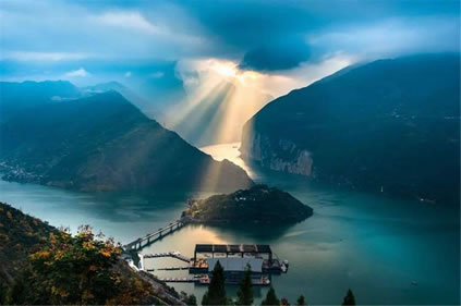 瞿塘峽又名夔峽。古時稱廣溪峽、巴峽、西陵峽等,為長江三峽第一峽。瞿塘峽西起奉節(jié)白帝城,東至巫山大溪鎮(zhèn),名勝古跡最為豐富。峽谷陡峭,兩岸雙峰欲合,斷巖千尺,古木蒼藤,好似繡幕高懸;峽中江水排山倒海,勢如山崩,聲震數(shù)里。2008年,三峽大壩蓄水至海拔175米后,瞿塘峽已是高峽平湖,兩岸險峰峻石依舊,既有滿山紅葉似彩霞的絢麗多姿,又有碧水蕩漾、煙波浩渺的靜美壯闊。