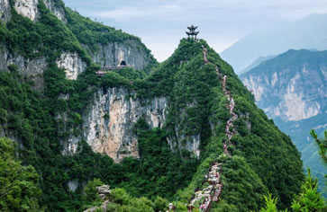 絕壁棧道位于龍缸景區(qū)映月洞至奓口石的游步道中,在數(shù)百米的懸崖上建設(shè)長約3320米的空中絕壁棧道,其中200米為全透明玻璃棧道。棧道分為牽手棧道和月影棧道兩個部分,徒步其間,一側(cè)是千尺奇峰,一側(cè)是深谷澗壑,仿佛驚險地行走在天地之間。