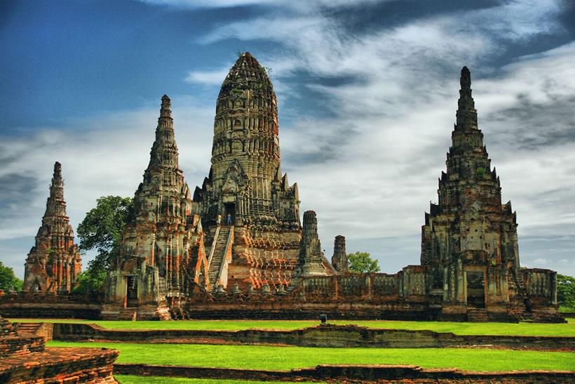 大城府(Phra Nakhon Si Ayutthaya) 大城府位于泰國(guó)中部,下轄16個(gè)縣,面積2556.6平方千米,人口約80萬(wàn)。在泰國(guó)首都曼谷以北約80千米,湄南河、華富里河、巴塞河三河交匯,形成了一個(gè)天然河流島。漫步島上,一座座古老佛塔和寺廟,磚紅色的殘?jiān)珨啾陲柦?jīng)風(fēng)霜,訴說(shuō)著這里曾經(jīng)的輝煌。這里是泰國(guó)世界文化遺產(chǎn)之一——大城古城遺址的所在地。 大城古城始建于1350年前后,是泰國(guó)歷史上第二個(gè)封建王朝大城王朝的國(guó)都。14至18世紀(jì),大城是一座繁榮富裕、人口稠密的大都市,同時(shí)也是重要的商業(yè)和宗教中心,僅主島區(qū)域的各式建筑就有超過(guò)3000棟。1767年,大城因戰(zhàn)爭(zhēng)而損毀,只有石質(zhì)佛塔、寺廟和宮殿得以保存。從1935年開始,泰國(guó)文化部藝術(shù)廳陸續(xù)開展對(duì)大城古城遺址的挖掘和保護(hù)工作。1976年,泰國(guó)政府宣布在古城遺址基礎(chǔ)上建立大城歷史公園,在大約20年的時(shí)間里,公園逐步從原有的289公頃擴(kuò)大到了480公頃,最終覆蓋全島以及周邊部分村鎮(zhèn)。1991年,大城歷史公園最初的289公頃區(qū)域,包括瑪哈泰寺、玉佛寺、柴瓦納蘭寺等重要遺跡入選聯(lián)合國(guó)教科文組織的世界遺產(chǎn)名錄。大城古城遺址成為泰國(guó)僅有的3個(gè)歷史類世界文化遺產(chǎn)之一。聯(lián)合國(guó)教科文組織認(rèn)為,歷史悠久的大城古城見證了泰國(guó)民族藝術(shù)誕生的杰出時(shí)代。