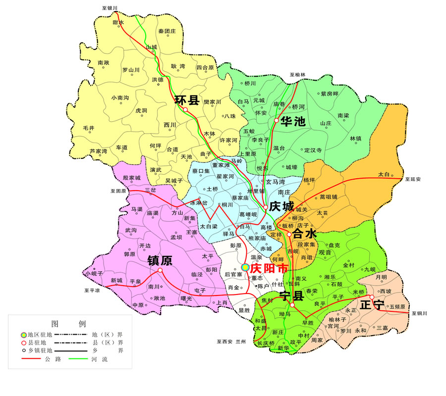 慶陽市轄1個區(qū)、7個縣: