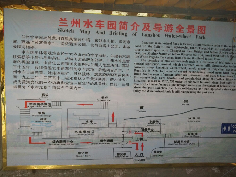 蘭州水車博覽園的南大門(正門)是一個造形獨特的木架結構的大門,它寓意著兩個意思: