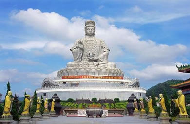 觀音像位于海拔488米的觀音山頂,是公園內(nèi)集游、行、購(gòu)、食等為一體的大型游客集散地,為廣大游客和信眾到觀音山的必游之地。世界最大花崗巖石雕觀音圣像,用極具靈氣的,公園建成時(shí),擇極具靈氣的花崗巖,靠人工雕琢,歷時(shí)三載,終請(qǐng)成凈高三十三米、重達(dá)三千多噸的世界最大花崗巖觀世音菩薩圣像。