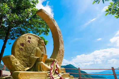 大月老,別名柴道煌,民間又稱月下老人、月下老兒,宋州宋城人,是中國(guó)民間傳說中主管姻緣的仙人,對(duì)人間男女以紅繩相系,確定姻緣。觀音山上的月老臺(tái)位于吉祥路中段,高3米,由坐式老人及半月組成,在月下倚布囊、坐于階上、向月檢書的老人正是執(zhí)掌天下之婚牘,維系千里之姻緣的月老。