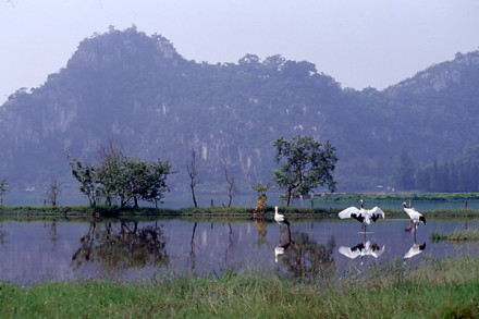 “丹頂鶴生態(tài)園”有丹頂鶴50多只,它們身姿高雅而端莊,兩翅不時(shí)輕舒慢舞,引著修長婀娜的脖子,偶而亭亭玉立,偶而輕盈踱步。它們時(shí)而高歌,時(shí)而飛翔,像是歡迎遠(yuǎn)道而來的客人。仙女湖中幾個(gè)自然的候鳥群島,它們由四個(gè)小島組成,分別名曰:藏珠、瑤玉、云起和小瀛洲。這四個(gè)小島和一旁的招鳥島以及小島周圍半徑150米水域范圍被列為生態(tài)絕對保護(hù)區(qū)。