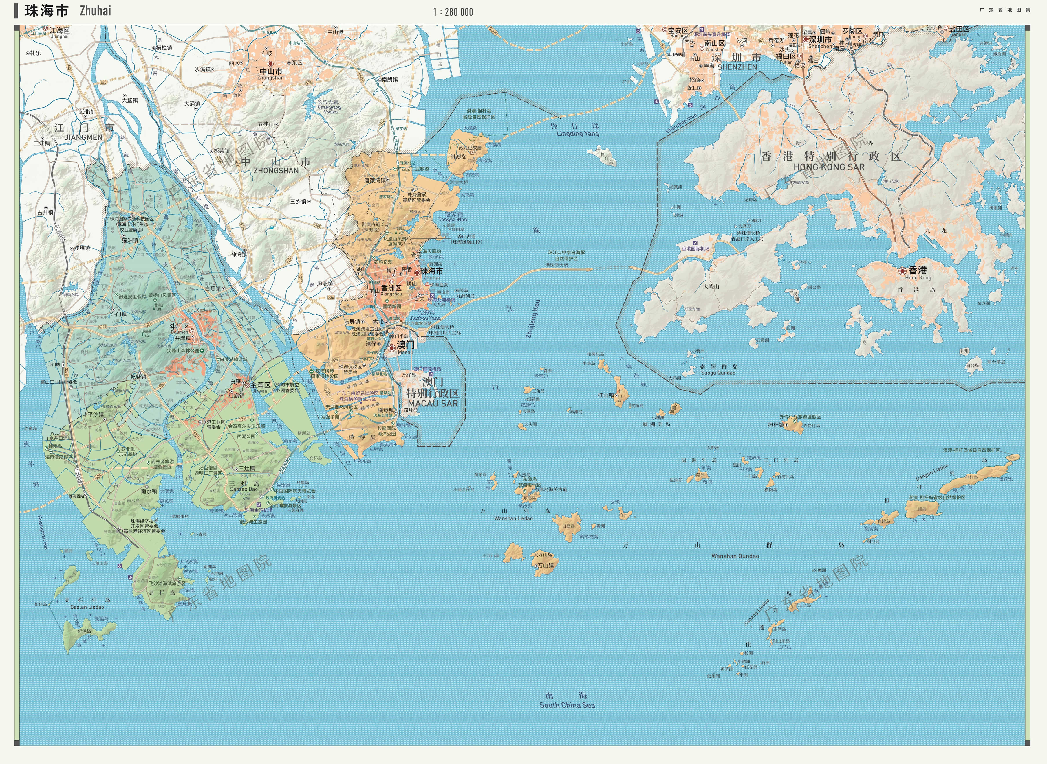 珠海市位于廣東省南部,珠江出海口西岸,瀕臨南海,東與中國香港水路相距36海里,南與中國澳門陸地相連,港珠澳大橋竣工后,珠海成為內(nèi)地唯一與中國香港、中國澳門同時(shí)陸路相連的城市。西鄰江門市新會(huì)區(qū)、臺(tái)山市,北與中山市接壤,距廣州市區(qū)140千米,是中國重要的口岸城市,設(shè)有拱北、橫琴、青茂、港珠澳大橋珠海公路、珠澳跨境工業(yè)區(qū)5個(gè)陸運(yùn)口岸,九洲港、灣仔港輪渡客運(yùn)、珠海港、斗門港、萬山港5個(gè)水運(yùn)口岸,共10個(gè)國家一類口岸,是僅次于深圳的中國第二大口岸城市。珠海市陸地面積1725平方千米,領(lǐng);以內(nèi)海域面積9348平方千米。