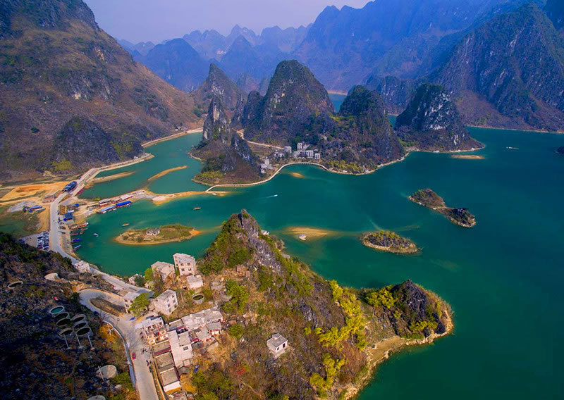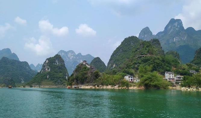浩坤湖,位于百色市凌云縣下甲鎮(zhèn)和伶站鄉(xiāng)交界的地域,是澄碧河水系堵洞而成的湖,湖長6公里,湖寬50至1500米。豐水期湖面面積約20平方公里。 浩坤湖發(fā)源于青龍山的澄碧河是珠江源之一,澄碧河水自水源洞噴流而出,先在洞口盤根錯節(jié)的千年古榕下聚成一彎綠瑩瑩的湖,再流穿過凌云縣城中心曲曲折折地流出城外去。澄碧河穿過泗城,流經一個叫下甲的地方,在彩架鉆入地下,潛行5公里后在弄盤露出地面,河水流經下甲弄盤至伶站浩坤一帶受阻而成湖,這就是浩坤湖。 浩坤湖是凌云這高山林立的地方最大的一片水面,古時叫東湖, 俗稱高山神湖。湖山秀美、岸線曲折,島渚星羅,幾十座山峰緊緊挾攜著一湖碧水,湖內島嶼交錯,水天一色,兩岸山奇崖秀:巨龍入地,掌上明珠、情蛙對語、望子牧歸、雞犬相聞、神駝昂首、相思夢縈,岸上花艷竹翠,藍天青山倒映水中,山水天渾然一體,令人陶醉,湖面寬闊,水質清澈,自然風光十分優(yōu)美,岸畔竹影婆娑,釣翁頻現(xiàn),花樹掩映,黃髫小兒戲水,馬兒羊羔撒歡,老牛吃著嫩草,一派溫馨和諧、天人合一景象,是美麗南方中一片難得的自然景觀。具有良好的水上觀光、度假旅游的自然地貌基礎。