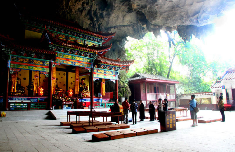 水源洞旅游景區(qū)位于凌云縣城北百花山下,距凌云縣城約1千米,也是廣西壯族自治區(qū)重點文物保護單位,百色市十八景之一。水源洞景區(qū)分為內洞和外洞兩部分。洞外綠堤兩道,垂柳、古榕遍岸,飛鳥爭鳴,兩座對稱排列的石拱小橋,古樸典雅。洞內有占地22000平方米、寬38米、高20.8米的大廳。洞門最高處的山崖絕壁上,刻有乾隆四十三年(1778)左江觀察使王玉德所題的“第一洞天”,大廳四周絕壁上刻有明、清以來文人墨客的題字、題聯(lián)、題詩80余幅,是凌云縣古石刻最集中、保護最完整的地方,展示了凌云近千年的州、府、縣建制歷史文化。