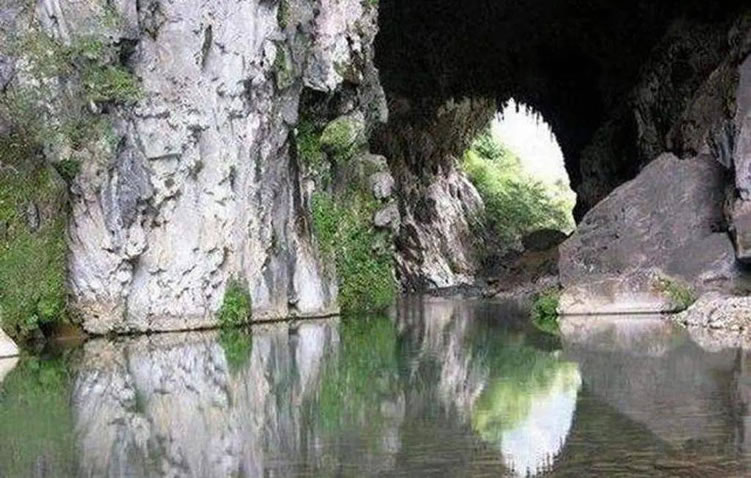 “周馬峽”位于流經(jīng)田林縣八桂瑤族鄉(xiāng)弄瓦村的馱娘江上,從六隆鎮(zhèn)的周馬屯上溯七八百米便到。又名“鴛鴦峽”,土名為“內(nèi)鉗”。“鉗”,壯語意為“陡峭”,又因其最險(xiǎn)處的江流一分為二,水窄約1米的右支稱“鉗布”(公),有礁石能通航;水寬達(dá)3米的左支稱“鉗牙”(母),可以通航。以水寬可以通航的一支為名,便叫“鉗牙峽”。峽長(zhǎng)1.5千米,兩岸石壁削立,最高處離水面約360米,左岸即為云南省地界?菟冢孀顚捥10多米,最窄處3米。