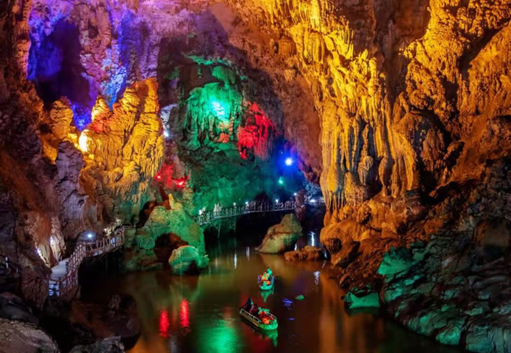 廣西平果通天河景區(qū)又稱“敢沫巖”、“紅軍巖”,是一個溶洞暗河型景區(qū),位于廣西百色市平果縣黎明鄉(xiāng)208省道旁。溶洞最大特點是面積大,總面積超過10萬平方米,其中“天上人間”面積3.3萬平方米;空氣好,6處洞口空氣通暢;空間高,最高的“九九洞天”99米;景點多,石筍、石柱、石幔、石瀑、石盾、石梯田、石鐘乳千姿百態(tài),鬼斧神工,20米以上石柱26余根;景觀奇,“神奇龍脊”長達60多米,鎮(zhèn)洞之寶“金銀雙塔”各高達30多米。通天河景區(qū)于2013年被評為國家AAAA景區(qū)。景區(qū)位于廣西西南部中心地帶,東距大化紅水河28公里,可連接大化七百弄等景點;北距巴馬縣63公里,208省道直達,適合與巴馬連線旅游,可連接“東巴鳳”各景點;西可連接百色、德天瀑布、通靈大峽谷等景點;南距南寧190公里,可連接南寧、北海等景點。
