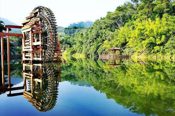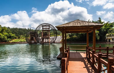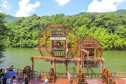 位于八寨溝景區(qū)大門(mén)外,是一個(gè)人工湖,湖面寬廣,三面環(huán)山,景色秀麗,可乘木船游覽龍珠湖風(fēng)光,混凝土大壩外有人工瀑布,瀑布下面是深水潭,有一架仿古大水車(chē),在流水驅(qū)動(dòng)下不停轉(zhuǎn)動(dòng)。