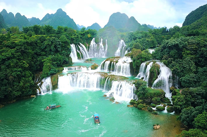 德天跨國瀑布位于祖國西南邊陲——廣西崇左市大新縣,開門是越南,跨步進(jìn)東盟,是2015年11月中越兩國總書記見證簽約的中國首個跨境旅游合作區(qū)。距廣西首府南寧約196公里,距大新縣57公里,距紅色革命老區(qū)百色188公里,奇特的喀斯特地貌和自然山水風(fēng)光,被稱為中越邊境的百里山水畫廊。景區(qū)占地面積約5.75平方公里,橫跨中越兩國,形成中國的德天瀑布,越南的板約瀑布。因景觀獨(dú)特被譽(yù)為亞洲第一大跨國瀑布、中國最美的六大瀑布。