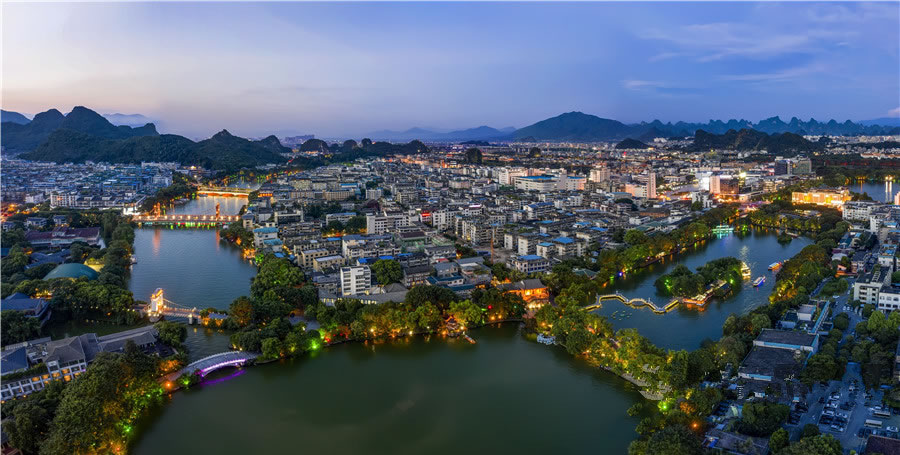 桂林兩江四湖景區(qū)是桂林城市名片,景區(qū)位于桂林市中心區(qū)域,是桂林城市中心經典環(huán)游線路。“兩江四湖”景區(qū)是指桂林市中心區(qū)的漓江市區(qū)段、桃花江市區(qū)段、榕湖、杉湖、桂湖、木龍湖等水域所組成,并且將其相互連接而構成環(huán)城水系的總稱。