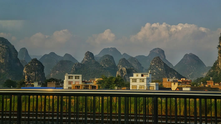 古明城是廣西保留較為完整的古縣城遺址之一。該城建于明洪武二十九年(1396年)。城以“十”字架對稱,街道皆由鵝卵石鋪成,鑲嵌有象征錢財、富貴的金錢圖案,象征幸福、光明的太陽圖案。 特別是近年來改造后的富川縣城,主街道立面突出瑤族民居“飛檐翹角馬頭墻、玉題干欄萬字窗、素瓦灰墻斜山頂、龍頭鳳尾伴太陽”的建筑風(fēng)格,兩岸風(fēng)情,特色彰顯;一城燈火,美輪美奐。 更難能可貴的是,富川的縣城建設(shè)一直不搞舊城改造,而是另辟新區(qū)。如今的富川縣城,有保留完好的唐宋元明清古風(fēng)的富陽舊城(明代古城);有民國時期的縣城中心新永街,騎樓風(fēng)格凸顯;有新中國成立后改革開放前的縣城政治文化中心新建路和鳳凰路;有改革開放后的都市風(fēng)貌城東新區(qū)。各個歷史時期的縣城風(fēng)貌并存,交相輝映,書寫了一部中國縣城的千年發(fā)展史。無形中成就了一座中國縣城發(fā)展歷史的露天博物館。