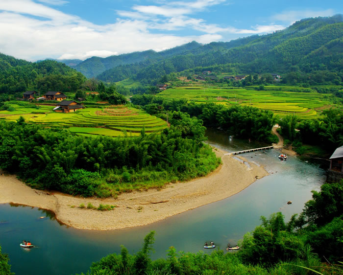 大洲生態(tài)農(nóng)業(yè)旅游區(qū),2005年12月由國(guó)家旅游局命名為"全國(guó)農(nóng)業(yè)旅游示范點(diǎn)"。位于融安縣長(zhǎng)安鎮(zhèn)大洲村,與縣城僅一水之隔,面積約2.2平方千米。大洲四面環(huán)水、島上竹林成片、綠樹(shù)成蔭、瓜果飄香,如一顆明珠鑲嵌在融江中。洲上地勢(shì)平坦,土壤肥沃,耕地面積700畝,素以農(nóng)業(yè)為主,是縣城的無(wú)公害蔬菜生產(chǎn)基地,其中以大洲頭菜、蘿卜、涼薯等土特產(chǎn)名揚(yáng)區(qū)內(nèi)外。洲上樹(shù)木蔥郁,古木參天,農(nóng)舍掩映,田園風(fēng)光優(yōu)美,兩岸翠竹連綿,岸邊百畝天然草坪與清澈寬闊的江水組成一幅美麗的畫(huà)面。景區(qū)修建了2000多米環(huán)洲游覽步道、小廣場(chǎng)、游客中心、碼頭、涼亭等一批公共設(shè)施,開(kāi)放大洲浮橋、千年古榕、三友亭、瓜果長(zhǎng)廊、無(wú)公害頭菜示范園、柚子園、樟樹(shù)王等10個(gè)景點(diǎn)。是集農(nóng)業(yè)觀光、休閑度假、無(wú)公害農(nóng)產(chǎn)品生產(chǎn)、教育、培訓(xùn)為一體的農(nóng)業(yè)旅游園區(qū)。