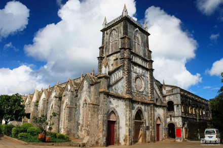 圣堂景區(qū)位于潿洲島盛塘村,是全國(guó)重點(diǎn)文物保護(hù)單位,“晚清四大天主教堂”之一。教堂由法國(guó)巴黎外方傳教士建于1853年,歷時(shí)10年建成,主體建筑保存較為完好,是中西文化融合共生的歷史見證。整座建筑主要取材于海底珊瑚沉積巖,運(yùn)用周密的力學(xué)設(shè)計(jì)建成,是典型的文藝復(fù)興時(shí)期法國(guó)哥特式教堂,外表高聳的羅馬式尖塔有著“向天一擊”的動(dòng)勢(shì),造成一種“天國(guó)神秘”的幻覺,堪稱別具一格。