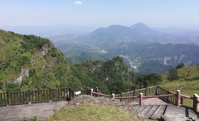 天龍頂國家山地公園位于岑溪市南渡鎮(zhèn),占地面積15平方千米。景區(qū)主峰天龍頂海拔1221米,相對高度221米,屬云開大山山脈的主峰。景區(qū)內海拔高于1000米以上的山峰還有石豹頂、公婆頂、湖廣頂?shù)人淖椒。景區(qū)的自然資源具有多樣性,景區(qū)內有高山湖泊、原始森林、溝壑峽谷、溪谷瀑布群、海拔1000米之上的高山草甸、海拔1200多米的丹霞山峰、延綿近數(shù)十里的斷層崖壁等等,形成了一個具有旅游觀光、休閑度假、戶外運動等多功能的復合型景區(qū)。同時,天龍頂國家山地公園也是一個純天然自然氧吧,空氣中負離子含量高達35000個/立方米。