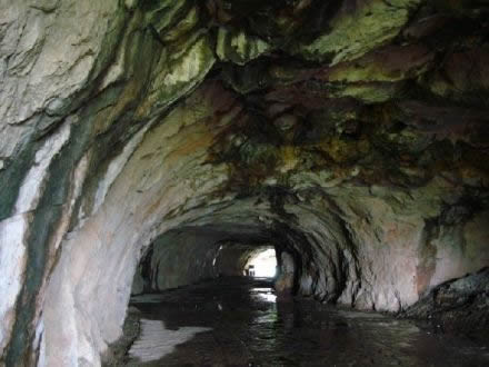 在象鼻山的象鼻和象腿之間。距今約1.2萬年前, 地殼抬升,漓江縮小,加速了水月洞的發(fā)育,形成一個通透的圓洞。長17米,寬9.5米,高12米,面積約150平方米!断笊接洝份d, “有石穴一,彼此可以相望,形圓而長,其半入于漓水中,水時高時下,故其穴亦時有大小”。