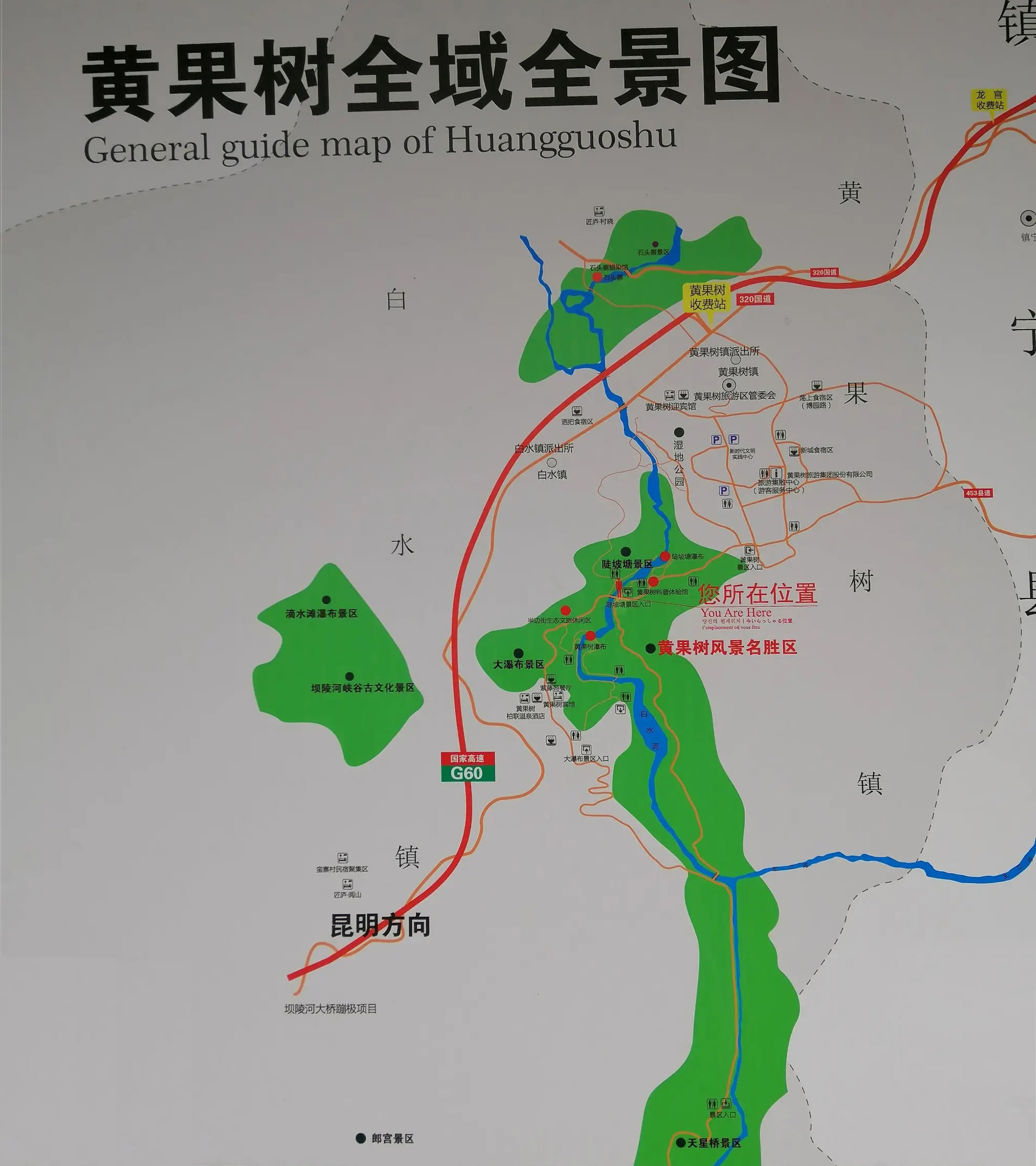廣義上的黃果樹(shù)風(fēng)景名勝區(qū)除含蓋狹義景區(qū)外,還包含滴水灘瀑布、神龍洞、郎宮、石頭寨等附近相關(guān)且需要獨(dú)立購(gòu)票的景區(qū)。