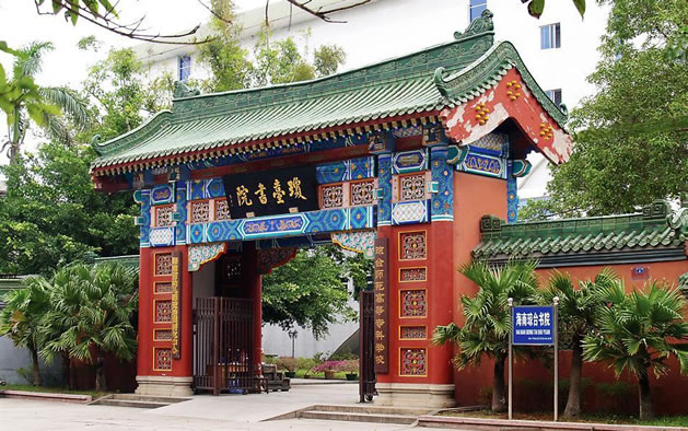 瓊臺書院位于府城中山路8號,相傳是后人為紀念海南第一才子、明朝大學士丘濬而建。始建于清康熙四十四年(1705年)據(jù)傳由于丘濬號瓊臺,人稱瓊臺先生,故書院由此得名。 書院現(xiàn)今是瓊臺師范學院的校址,其主樓奎星樓高二層,綠瓦、紅廊、白墻,是一座具有民族特色的磚木結構建筑,至今保存完好。樓內雕梁畫棟,異常別致;樓前綠樹成蔭,環(huán)境秀麗雅靜。著名的粵劇、瓊劇《搜書院》的故事就發(fā)生在此,瓊臺書院隨著《搜書院》而蜚聲海內外。