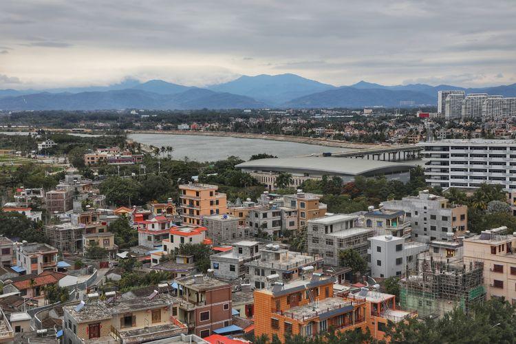 陵水黎族自治縣地勢西北高,東南低。地形主要由山地、丘陵、平原三部分組成,西北部為山區(qū),中部為丘陵區(qū),東南部為平原區(qū),自西北向東南傾斜。境內最高峰為吊羅山三角峰,海拔1499.80米。東北部西南走向的吊羅山脈與西北部東南走向的七指嶺山脈呈“八字形”相交于縣域西北部,將東部淺海沉積平原以敞口圍住,形成陵水盆地。盆地內部零星分布著兩大山脈及其余脈延伸形成的孤丘和臺地。