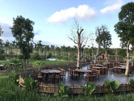 “稻田盛宴”是水稻國(guó)家公園稻田邊“長(zhǎng)出來(lái)”的原生態(tài)餐飲品牌,將中國(guó)五千年的“稻文化”“米文化”與當(dāng)?shù)亍袄杓椅幕苯Y(jié)合,打造特色田園風(fēng)情大型鄉(xiāng)村主題餐廳。圍繞中國(guó)“稻文化”、“海洋文化”主題,在椰樹(shù)下、稻田旁、鴨塘邊,滿足對(duì)“吃”的美妙想象。