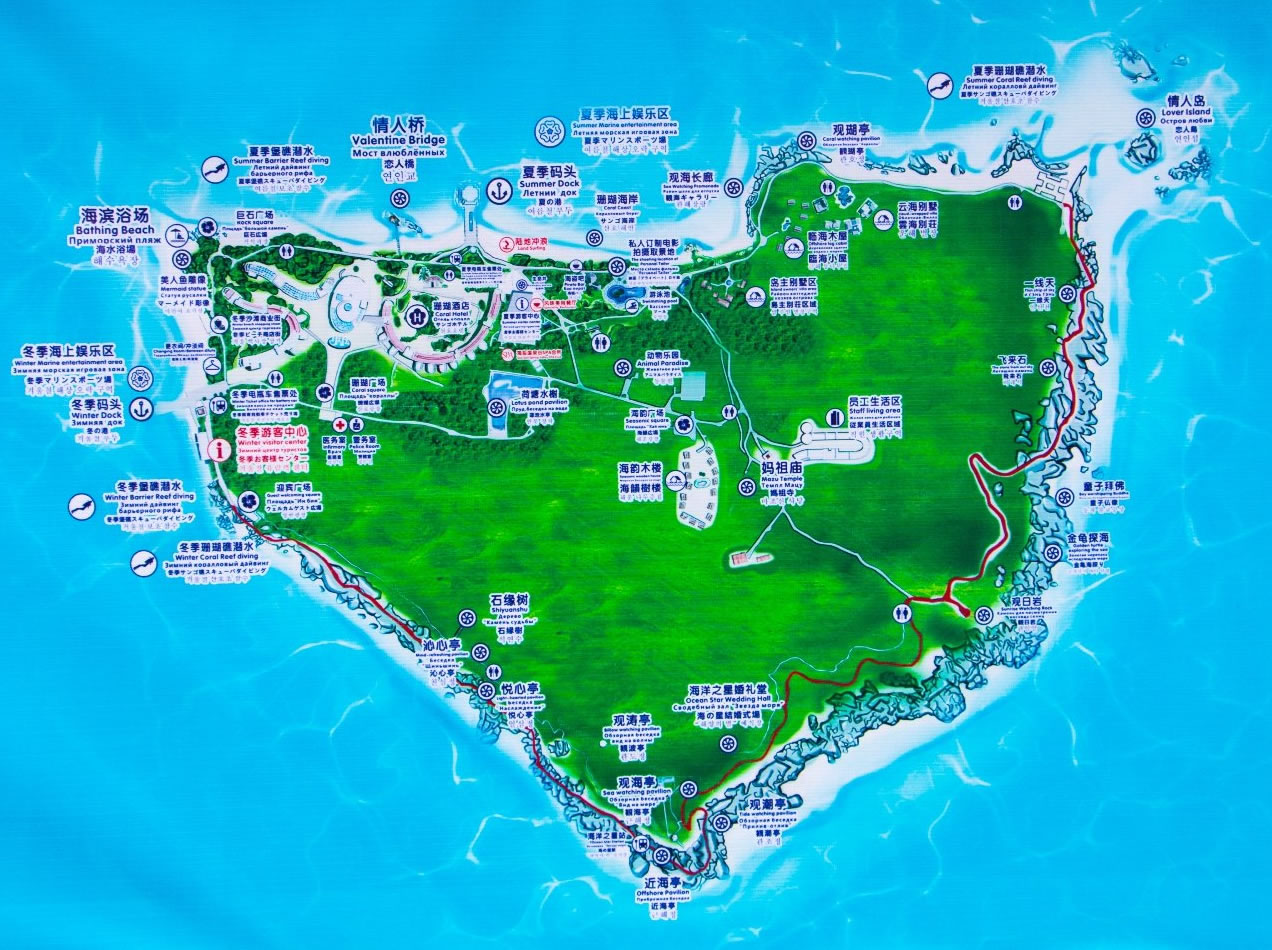 距三亞市30公里,鳳凰機(jī)場38公里,緊靠?谥寥齺喌母咚俟,位置優(yōu)越,交通便利。蜈支洲島是海南島周圍為數(shù)不多的有淡水資源和豐富植被的小島,有二千多種植物,種類繁多。