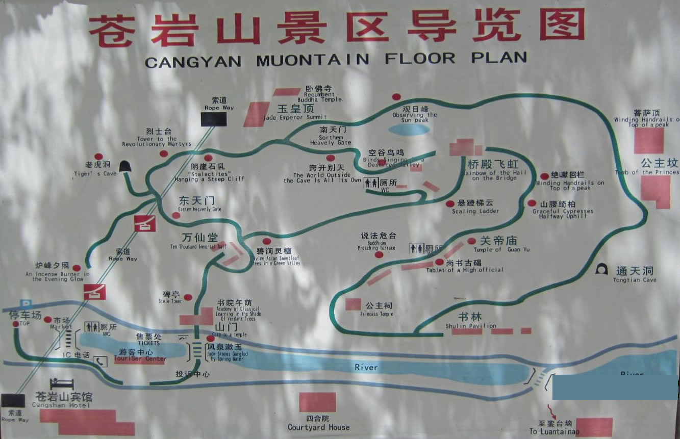 蒼巖山有著名的十六景,景景入勝,步步宜人。為:巖關(guān)鎖翠、風(fēng)泉漱玉、書院午蔭、碧澗靈檀、懸登梯云、橋殿飛虹、峭壁嵌珠、絕獻回欄、空谷鳥鳴、懸崖奇柏、說法危臺、虛閣藏幽、尚書古碣、陰崖石乳、竅開別天、爐峰夕照。