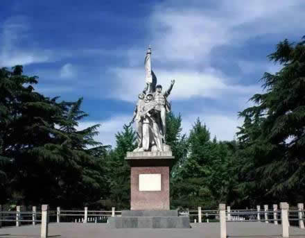 步入大門(mén),迎面而立的是一組高約11米的工農(nóng)兵塑像。該塑像成為邯鄲市繼晉冀魯豫烈士陵園內(nèi)“八路軍”、“民兵”兩組大型人物群雕后,又一組大型雕塑。工農(nóng)兵塑像的后面是筆直的公園大道,中間為如茵的草叢和剪裁整齊的灌木,兩側(cè)為蒼勁挺拔的雪松,一直向西延伸到叢臺(tái)下的環(huán)城湖。