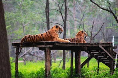 秦皇島野生動物園充分利用林海、綠地為各類野生動物提供休養(yǎng)生息的樂園,模仿各種動物的原生環(huán)境,在充分保護(hù)和利用現(xiàn)有資源的條件下,將動物分區(qū)隔離散放,營造返樸歸真、回歸自然的氛圍,形成人與自然相融的旅游特色。100余種5000多頭(只)野生動物在模擬的原生環(huán)境中悠然自得,盡顯它們的野性和活力,游人或與動物直接接觸或乘車穿梭于各類動物生活小區(qū),人在游車上,車在獸中行。 游客既可自己駕駛私家車自由自在地游園,也可乘坐園內(nèi)別具特色的森林小火車游覽。當(dāng)您乘坐游覽車進(jìn)入猛獸區(qū)親眼目睹斑斕猛虎攔路,雄獅怒吼爭食時,定會使你心驚肉跳、充滿刺激;當(dāng)您漫步林間綠地,手持一把青草喂喂駱駝,與小鹿、小獅子、小老虎、大象、小猩猩打個招呼和個影,盡情欣賞群猴嬉戲、孔雀開屏、游禽百態(tài)、涉禽長鳴時,您將會充分享受到與動物和諧共處的樂趣。