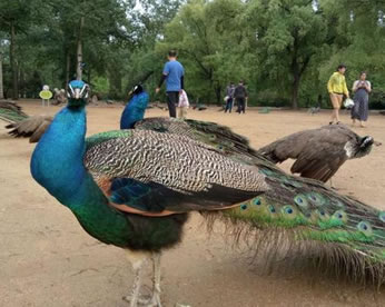 世界瀕危野生動物綠孔雀在秦皇島野生動物園不斷繁衍生息,已從1949年的20余只繁育到80只,成為中國最大的綠孔雀群。綠孔雀俗名:孔雀、越鳥、爪哇綠孔雀;體型最大的雉科鳥類,體重7000-8000克。雄鳥全長約140厘米,雌鳥約100厘米。雄鳥體羽翠藍(lán)綠色,下背閃紫銅色光澤。頭頂有一簇直立的羽冠。尾上覆羽延伸成尾屏,可達(dá)1米以上,約有百余枚,并有紫、黃、藍(lán)、綠多種顏色構(gòu)成的眼狀斑紋,形成孔雀特有的尾屏。開屏?xí)r顯得異常艷麗、光彩奪目。雄鳥尾特長,頭部冠羽豎起,頸、上背及胸部具綠色光澤,尾上覆羽特長并具閃亮眼斑而成尾屏。雌鳥羽色以褐色為主,帶綠色輝光。無尾屏。