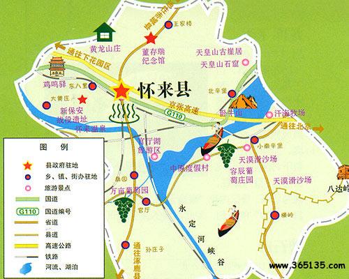 生態(tài)環(huán)境良好:該縣地處北京上風(fēng)上水,空氣清新,山清水秀,景色怡人,具有良好的生態(tài)環(huán)境。全縣林地面積129.5萬(wàn)多畝,森林覆蓋率達(dá)到30.4%。位于懷來(lái)盆地中央的官?gòu)d水庫(kù)猶如一顆璀璨的明珠鑲嵌其中,環(huán)水庫(kù)周圍擁有梨園、海棠園、葡萄園等眾多花果園,臥牛山旅游度假、太師莊休閑度假、永定河峽谷漂流、天漠滑沙旅游多個(gè)各具特色的旅游景點(diǎn)、景區(qū)交叉點(diǎn)綴。集葡萄種植、加工、旅游于一體的容辰葡萄莊園,被國(guó)家批準(zhǔn)為首批農(nóng)業(yè)旅游示范點(diǎn)。天皇山、白龍?zhí)兜茸匀伙L(fēng)景區(qū),植被茂盛,風(fēng)景秀美。黃龍山莊花香幽遠(yuǎn),生態(tài)觀光獨(dú)具特色。
