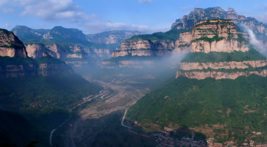太行大峽谷境內(nèi)斷崖高起,群峰崢嶸,臺壁交錯,蒼溪水湍,流瀑四掛,是“北雄風光”的典型代表。核心景區(qū)包括:泉潭疊瀑桃花谷、百里畫廊太行天路、太行之魂王相巖、原始生態(tài)峽谷漂流、人間仙境仙霞谷等。