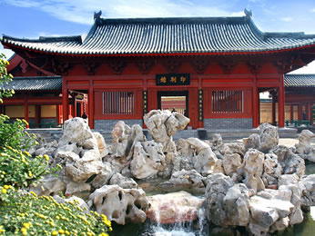 前身為少府監(jiān),相當(dāng)于皇家科學(xué)院。歇山、懸山廳堂,曲折迂回游廊,點(diǎn)綴以小橋,水池,奇石,花木,是一所嚴(yán)謹(jǐn)雅致的園中之園。