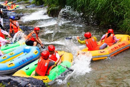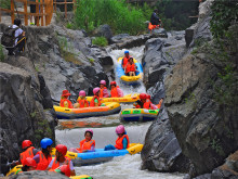 豫西大峽谷漂流----豫西大峽谷斥資近億元打造的國內(nèi)頂級(jí)漂流,集“巖洞漂流、暗河漂流、峽谷漂流、瀑布漂流、回旋漂流”五大特色于一體,漂流河全程6公里,穿越3處穿山巖洞,經(jīng)過2處回旋漂流,飛躍白龍瀑、九曲瀑、大淙瀑。從起漂碼頭到第一級(jí)渡口,約有一公里的平緩水域,水勢潺湲。其后水流順勢而下,則由不得你不瘋狂,不尖叫!漂流河道時(shí)而平緩安靜、波光粼粼如掩面嬌羞的少女;時(shí)而飛流直下,偏偏輕舟瞬時(shí)激起千層白浪,倏然之間,乖順的輕舟突然間就成了桀驁不順的烈馬,肌肉緊繃,左沖右撞。尖叫之聲隨之響徹于山谷之中,但卻動(dòng)聽如天籟之聲。