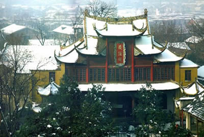 北院的主體建筑是藏經(jīng)樓。藏經(jīng)閣1920年至1922年興建,是一座兩層五開(kāi)問(wèn)的樓閣式建筑,高約25米,頂為獸頭大脊,魚(yú)角搬爪,斗拱飛檐,古樸玲瓏,當(dāng)面為四柱通天,雙鳳朝陽(yáng),五龍戲珠。整個(gè)建筑、門扇窗牖,涂朱繪彩,刻畫(huà)鏤雕,精巧壯觀,金碧輝煌,是武漢市唯一一座磚木結(jié)構(gòu)的古建筑物。這里珍藏著許多佛教文物,除《藏經(jīng)》外,還有佛象、法物、石雕、木刻、書(shū)畫(huà)碑帖及外文典籍等。