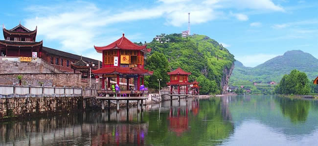 邵陽市歷史上的“寶慶十二景”,多點綴于資江兩岸,環(huán)布市區(qū)。由雙清公園、水府廟小游園和東塔公園連綴而成的城區(qū)風景區(qū),兼有人工之美和自然之秀。水府廟前,雙江匯流;資江南北,兩塔并峙;江流蜿轉,四橋飛虹;近水遙山,綠意蔥籠。市郊附近的溶洞亦為奇觀。境內(nèi)辟有新寧崀山、城步南山、武岡云山、新邵白水洞等風景區(qū),60多個旅游景點。全國道教七十二福地之一的武岡云山歷來香火鼎盛。有兩華聳翠、一瀑飛濤、仙橋橫漢、杏塢藏春等10景,野生動植物品種繁多,被辟為國家森林公園。城步南山象一塊碧綠的翡翠鑲嵌在湘西南邊陲,芳草如茵,牛羊成群,既具北國草原的雄渾,又不失江南草山的靈秀,為回歸綠色旅游的最佳生態(tài)環(huán)境。新寧崀山系典型的丹霞地貌景觀,集奇峰、幽谷、碧水、丹崖于一體,方圓達100平方公里,紫霞洞曲徑通幽,駱駝峰高聳入云,牛鼻寨的“天下第一巷”鬼斧神工,堪稱“亞洲第一”的仙人橋渾然天成。登八角寨遠眺,群峰幽谷,丹崖秀水,盡收眼底;泛舟扶夷水上,澄江如練蜿蜒于百里畫廊。全國著名經(jīng)濟學家厲以寧至此油然感慨:“一線天梯驚煞人,幽谷深處凈無塵;新寧別有奇峰在,不讓武陵獨占春!鄙坳柹酱ǖ乩恚沱愄斐。崀山景區(qū),是天下風光之勝;南山牧場,為江南草山明珠;黃桑森林王國,云山佛門圣地,綏寧神奇綠洲,龍山地下藏金。銀杉國寶,鐵杉群落,自然景觀,民族風情。泛舟資江三峽,尋幽舜皇秀色,無不風光奇絕,引人入勝。邵陽更是一方人文薈萃之區(qū)!耙鹿谕趸,耕鑿古風同”。邵陽開化甚早,民風淳厚,智慧勤勞,尚武崇文,文明綿遠,代有才人。唐代胡曾,工詩味史;車氏一家,才俊滿門;清代魏源,倡師夷制夷之說;民元蔡鍔,有護國倒袁之勛。比及民國,志士接踵。御外侮而謀解放,袁國平沙場獻身;求真理而競自由,尹如圭血寫春秋。他們都是邵陽人杰,千古風流,民族精英。