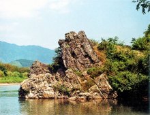 那些打漁撈蝦的人,在雨過(guò)天晴的時(shí)候,遠(yuǎn)遠(yuǎn)地會(huì)看到一個(gè)漂亮的女子跪坐在那塊石頭上,梳洗她那又長(zhǎng)又黑的頭發(fā)。走近去一看,又沒(méi)有了。大家都曉得她就是炎帝的妃子,把妃子跪坐過(guò)的石頭叫做“胭脂石”。