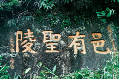 邑有圣陵位于炎陵故道,橋頭嶺下官壟口道旁,石壁上鐫刻乾隆十六年路碑“邑有圣陵”四個(gè)大字。炎帝去世后,人們把他安葬在鐘靈毓秀的“長(zhǎng)沙茶鄉(xiāng)之尾”。幾經(jīng)周折,終于來(lái)到一個(gè)嶠陽(yáng)嶺的地方。這里“四面嶄絕,鳥(niǎo)道羊腸”。站在嶠陽(yáng)嶺上,舉目南望,只見(jiàn)群山環(huán)抱之中,有一塊平展開(kāi)闊的原野。洣水三回九折,穿嶂過(guò)峽,奔騰而來(lái)。原野南端,層巒疊翠,虬木森森,煙云出沒(méi),氣象萬(wàn)千。認(rèn)為鹿原陂就是一塊富庶之地,至尊之地,文明發(fā)祥之地。辛勞一生的炎帝,應(yīng)該有這樣一塊安息之地。