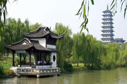 瘦西湖(Slender West Lake)原名保障湖,位于江蘇省揚州市城西北郊,總面積2000畝,水上面積700畝,游覽區(qū)面積100公頃。