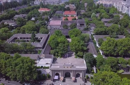 門樓建于1929年,姚彬設計。這里也是太平天國天朝宮殿的真神榮光門、清兩江總督署以及舊督軍署大門舊址。在這典型的古羅馬建筑風格門樓前,保留了督署前石獅,并加建了照壁(后于2003年因長江路拓寬被拆除)。