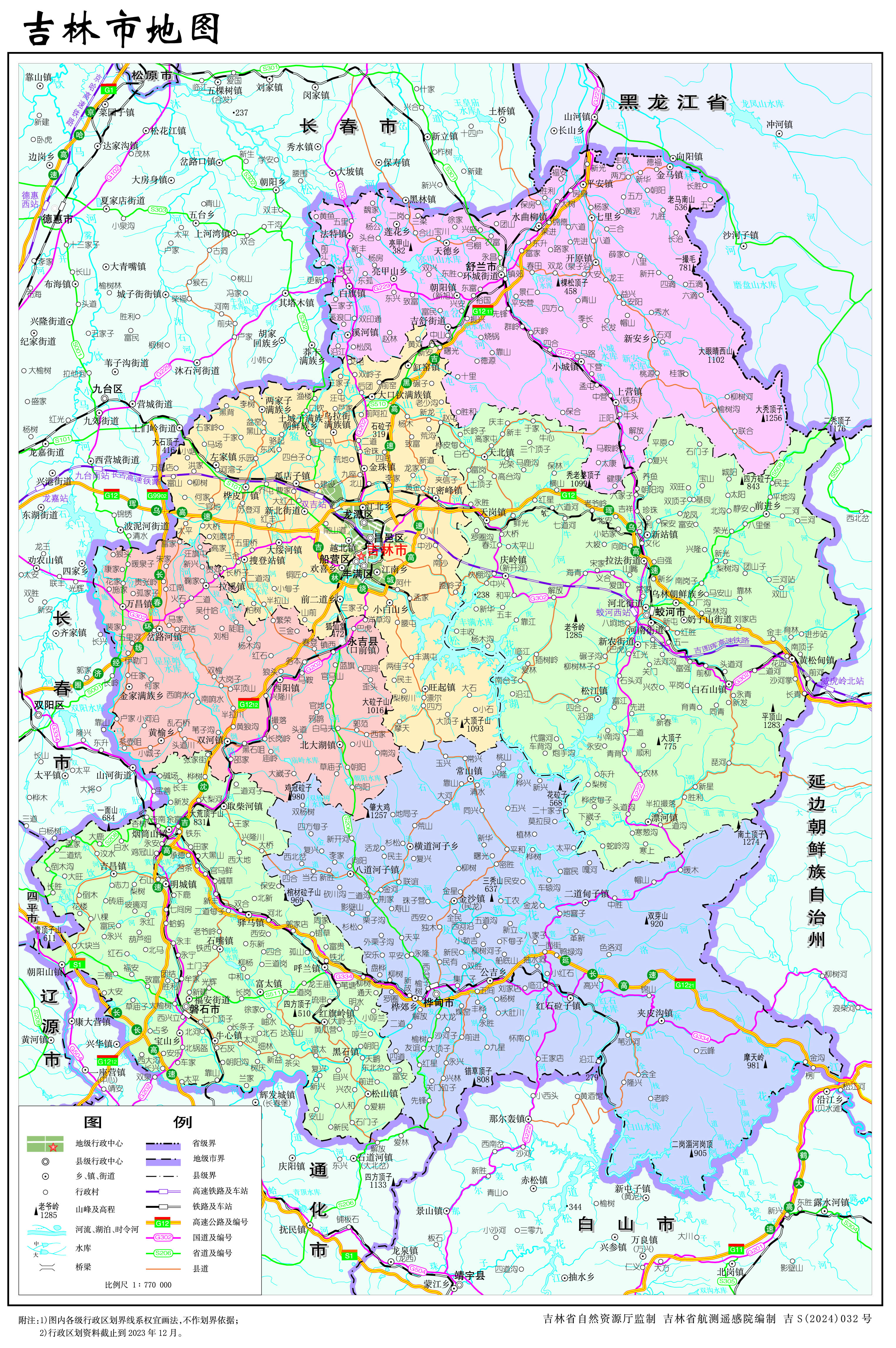 吉林市轄4個城區(qū)、1個縣,代管4個縣級市: